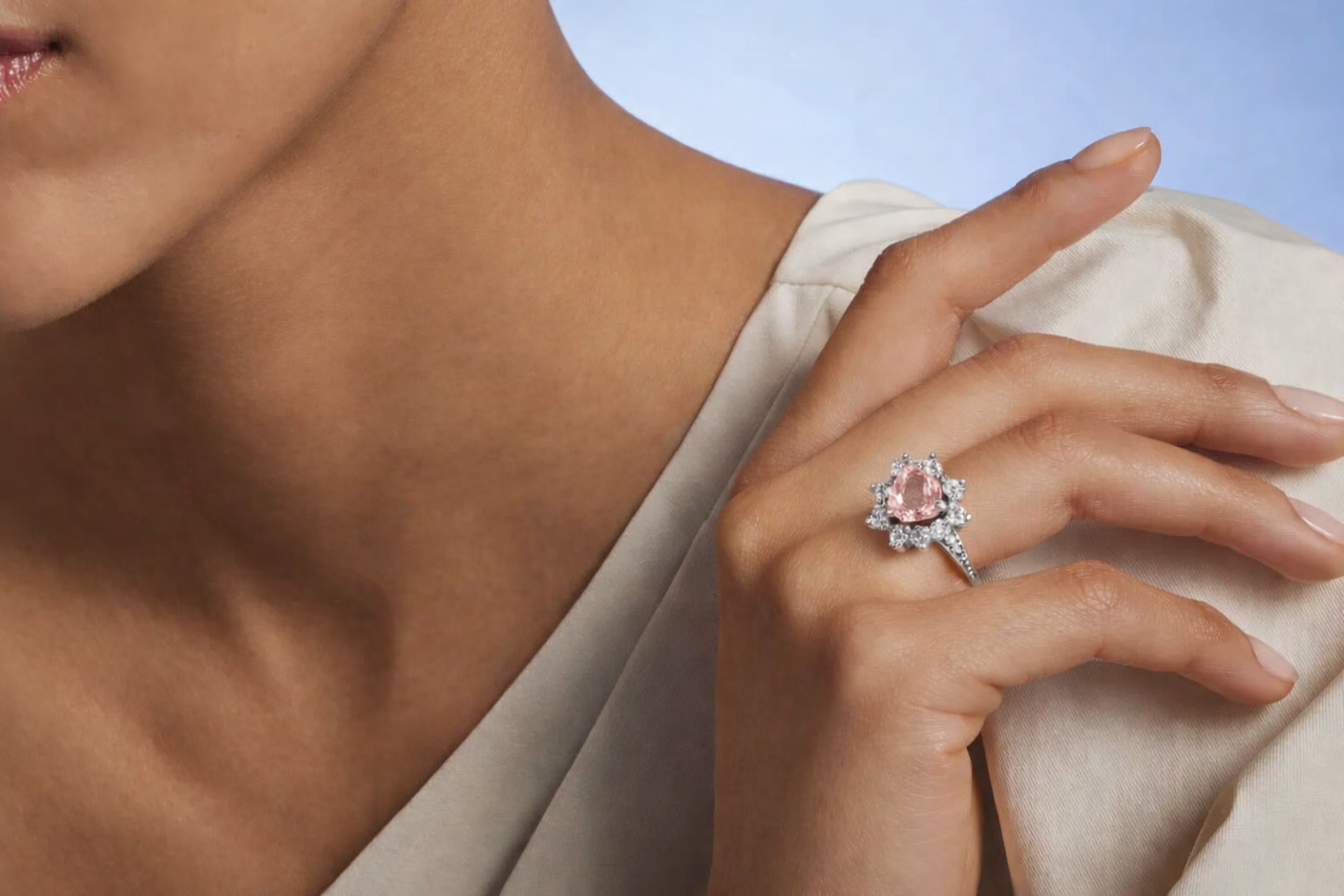 Styled with a classic halo silhouette, the Eternal Heart Halo jewellery takes inspiration from the timeless symbol of the heart — representing love, compassion, and connection. The radiant diamonds around the centre stone enhance brilliance and draw focus to the heart’s soft pink glow. Its refined silhouette makes it ideal for both special occasions and daily luxury.